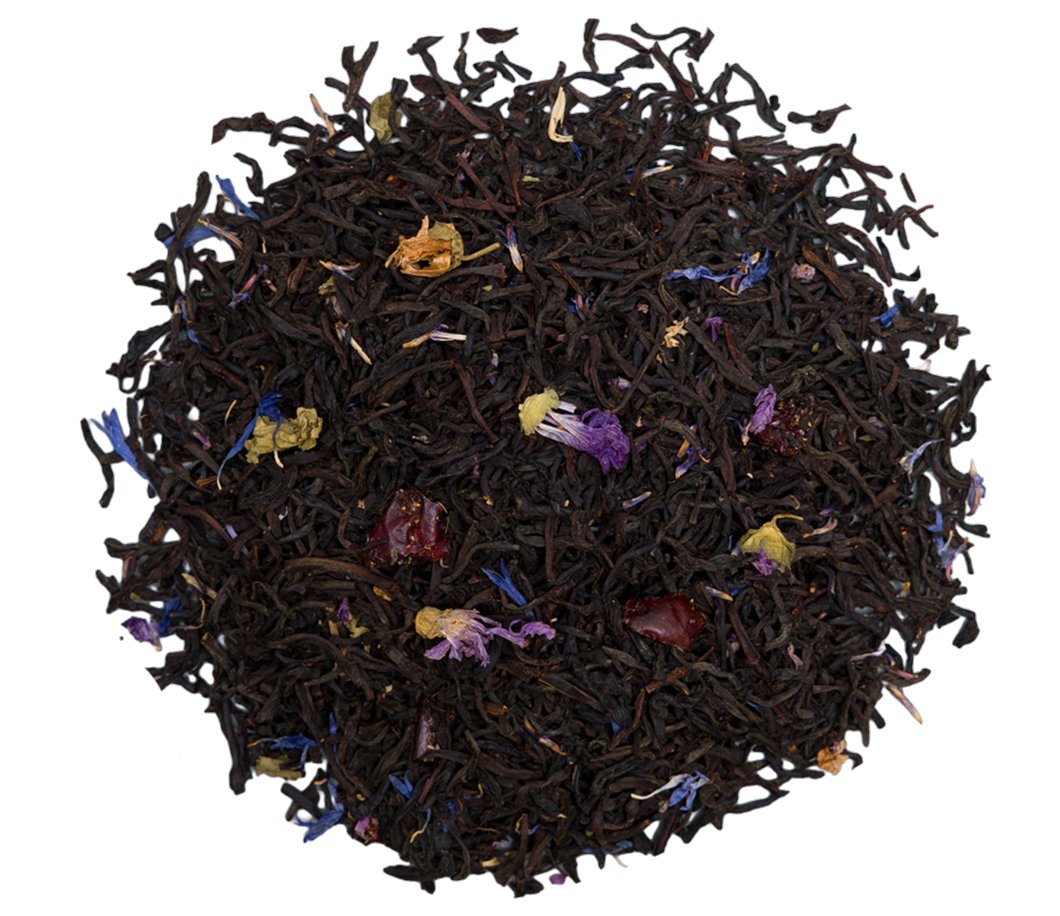 Zutaten: schwarzer Tee 88,9 %, Cranberry-Frucht 6 %, Blaue Malve-Blüte 1,5 %, Kornblumenblüte 0,6 %, natürliches Aroma (1001 Nächte – Beeren und Blüten)